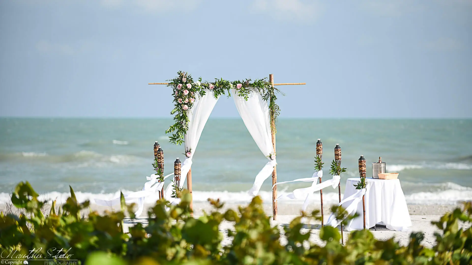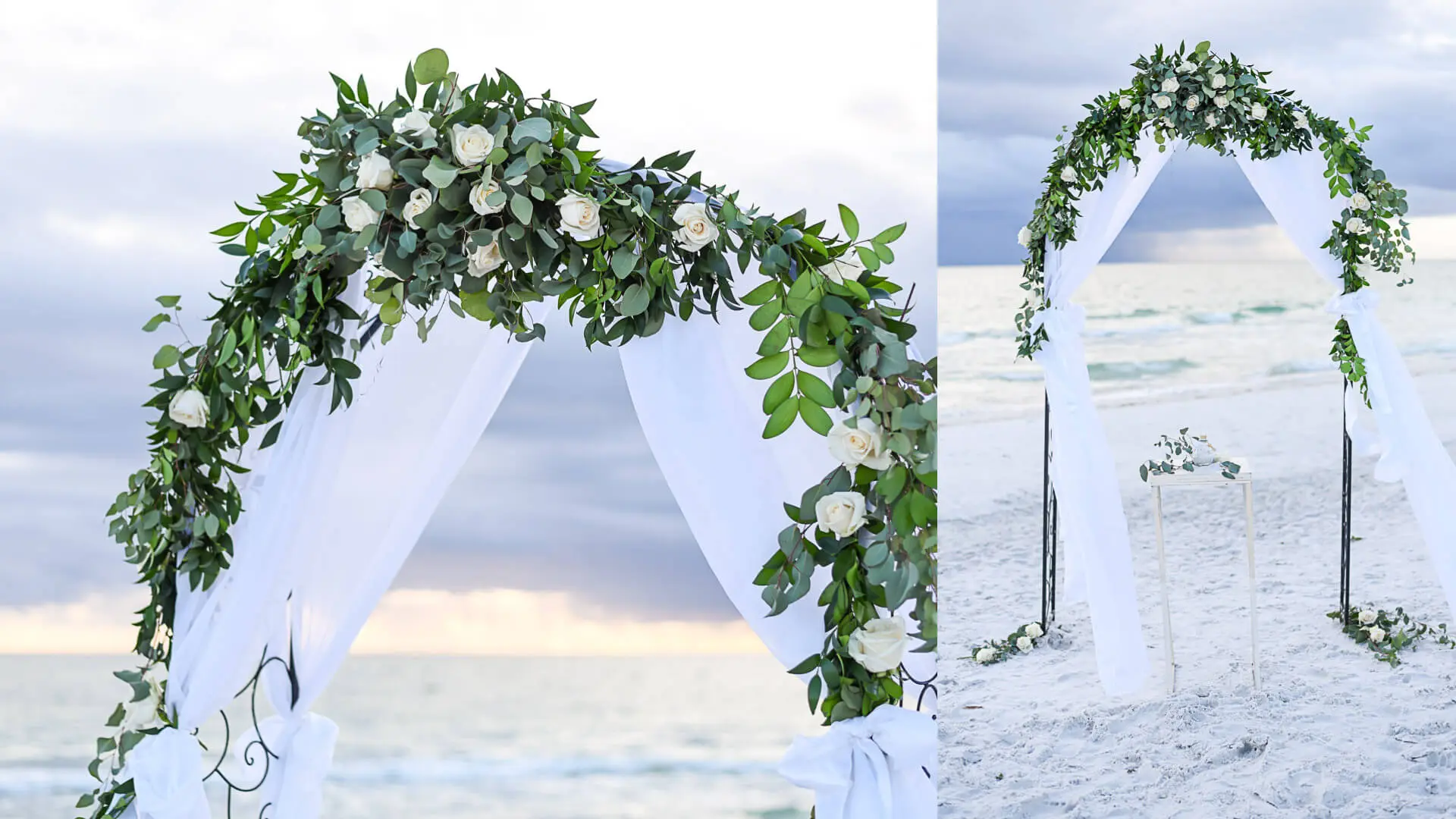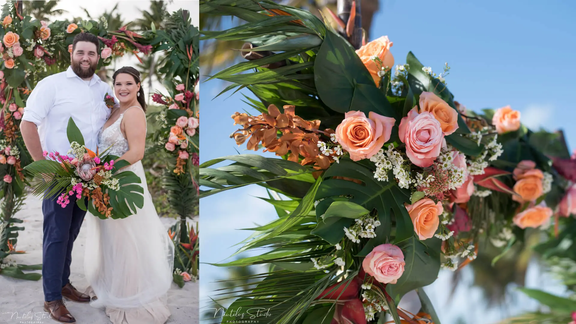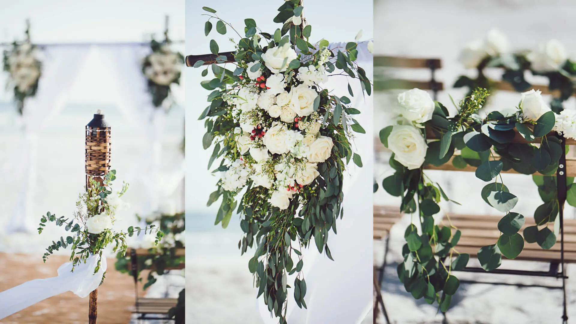Galería de decoración de bodas con algunos ejemplos de nuestros arcos de boda y decoración con flores frescas y encuadernación en verde. Le invitamos a hacernos saber sus deseos individuales.